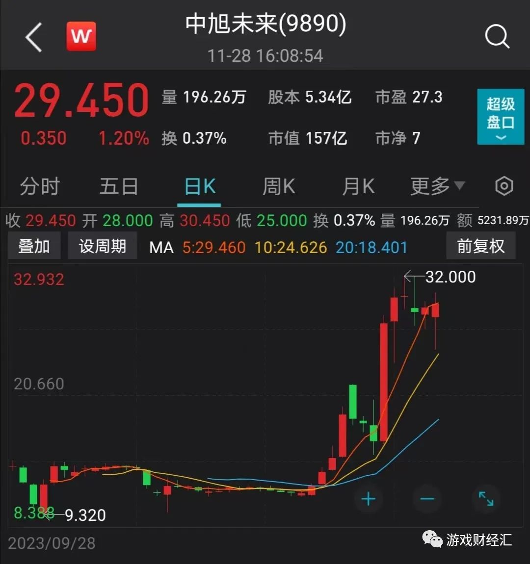 “贪玩游戏”的运营商中旭未来上市两个月,股价翻了一倍以上,市值突破150亿大关。