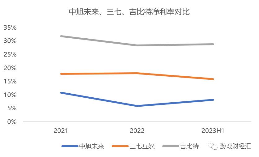 近三年来,中旭未来净利率仅在10%上下浮动,远低于吉比特、三七互娱等厂商。