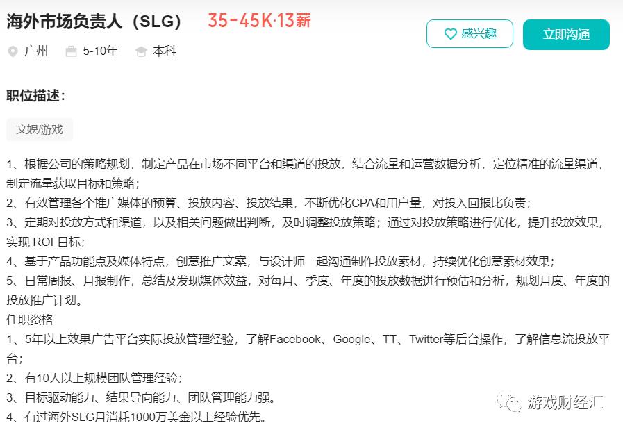 游戏财经汇发现,近期中旭未来正在招聘海外市场负责人、海外广告投放、游戏创意策划、海外游戏运营等多个海外岗位。从招聘信息来看,中国港澳台、东南亚、日韩市场可能是中旭未来出海的第一站。