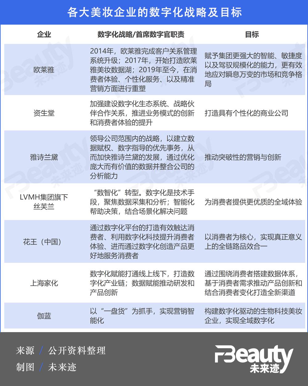 不止科蒂一家,近些年来,各大中外美妆企业在数字化方面的战略都在提速。《FBeauty未来迹》梳理发现,诸多企业现已提出数字化战略,并以此作为转型重塑的关键驱动力。