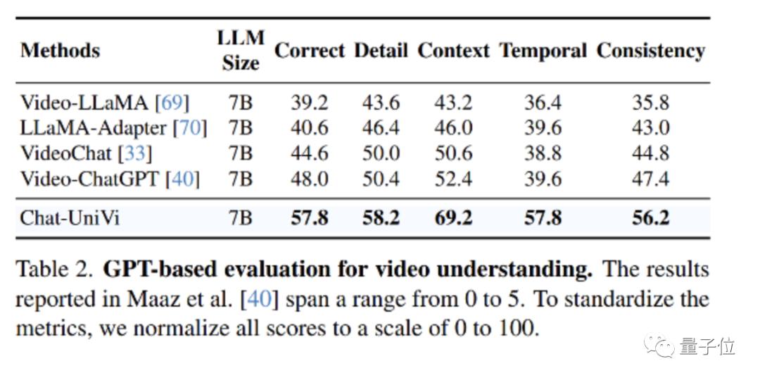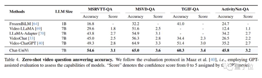 在所有数据集上,Chat-UniVi均表现优于最先进的方法,如VideoChat和Video-ChatGPT等。