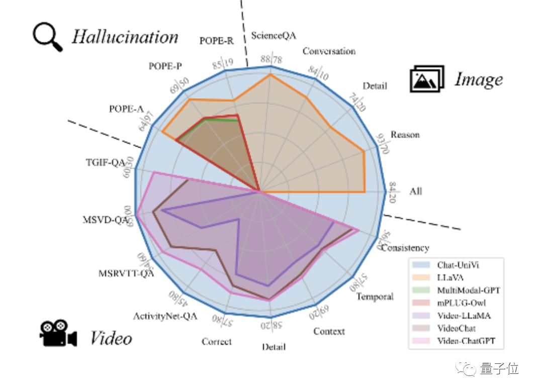 以此为基础,Chat-UniVi在图片及视频上的17个基准上,都表现得还不错。