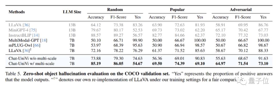 在幻觉评估方面,Chat-UniVi表现优于最近提出的最先进方法。
