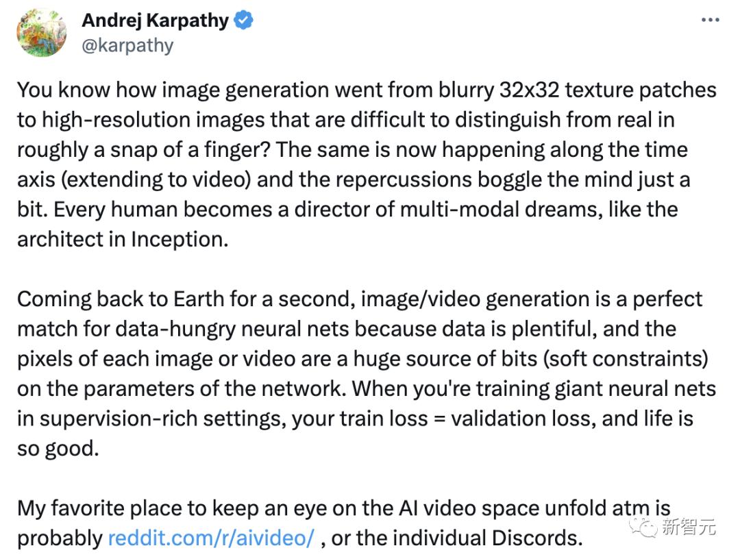 OpenAI科学家Karpathy本人是非常关注图像-视频生成领域的新动向。并且也在Pika Labs的本轮融资中参投。