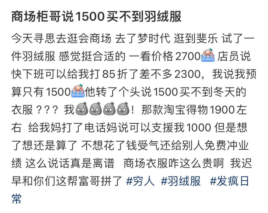 我到底有没有努力工作?这么多年了,怎么连羽绒服也买不起了?