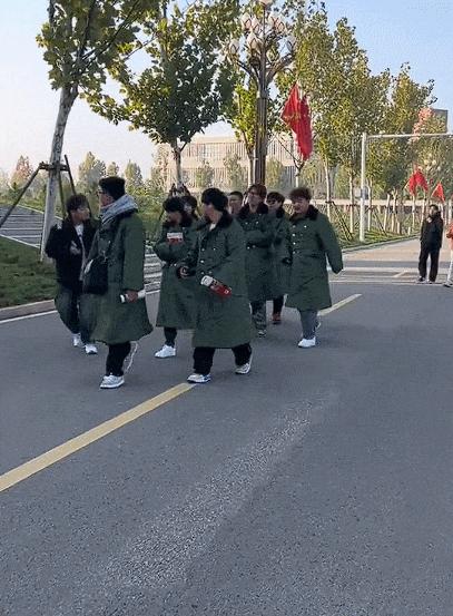大学校园里,军大衣的密度已经超越了建筑工地。