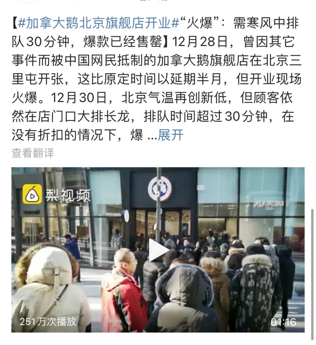 “在三里屯,10个穿羽绒服的人中,6件是鹅,剩下3件是The North Face,还有1件是北京电影学院校服。”