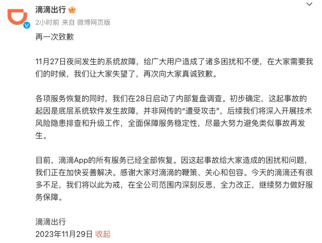 02 滴滴再次致歉:底层系统软件发生故障