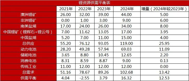 一德有色研究员谷静向记者表示,根据对过往两年锂资源供需的情况来看,2024年锂资源的过剩量将继续扩大。