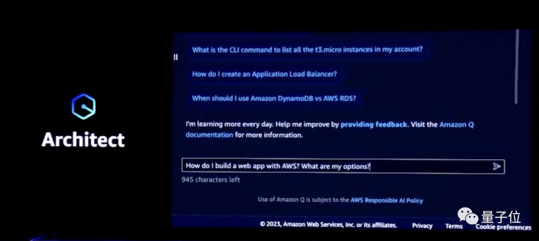 Amazon Q不仅能介绍亚马逊云科技的各项功能,还可以根据用户需求,提供利用亚马逊云科技各项服务构建应用的方法。