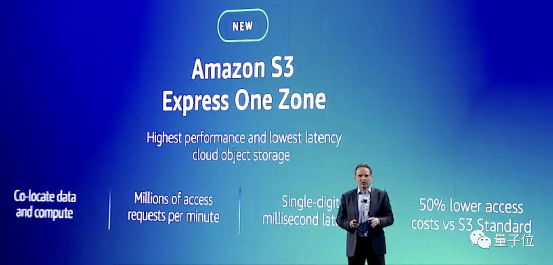 与这些芯片和聊天机器人Amazon Q同时发布的,还有全新的云存储服务亚马逊云科技 S3 Express One Zone。
