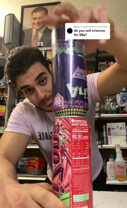 TikTok用户展示更换罐盖后AriZona罐装冰茶罐口大小的变化,图片来源:TikTok