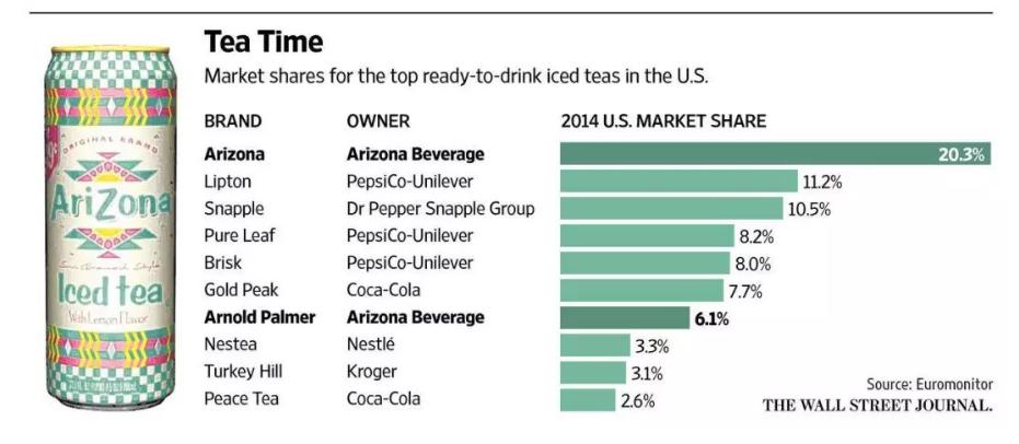 2014年美国即饮冰茶饮料市场份额占比,图片来源:华尔街日报