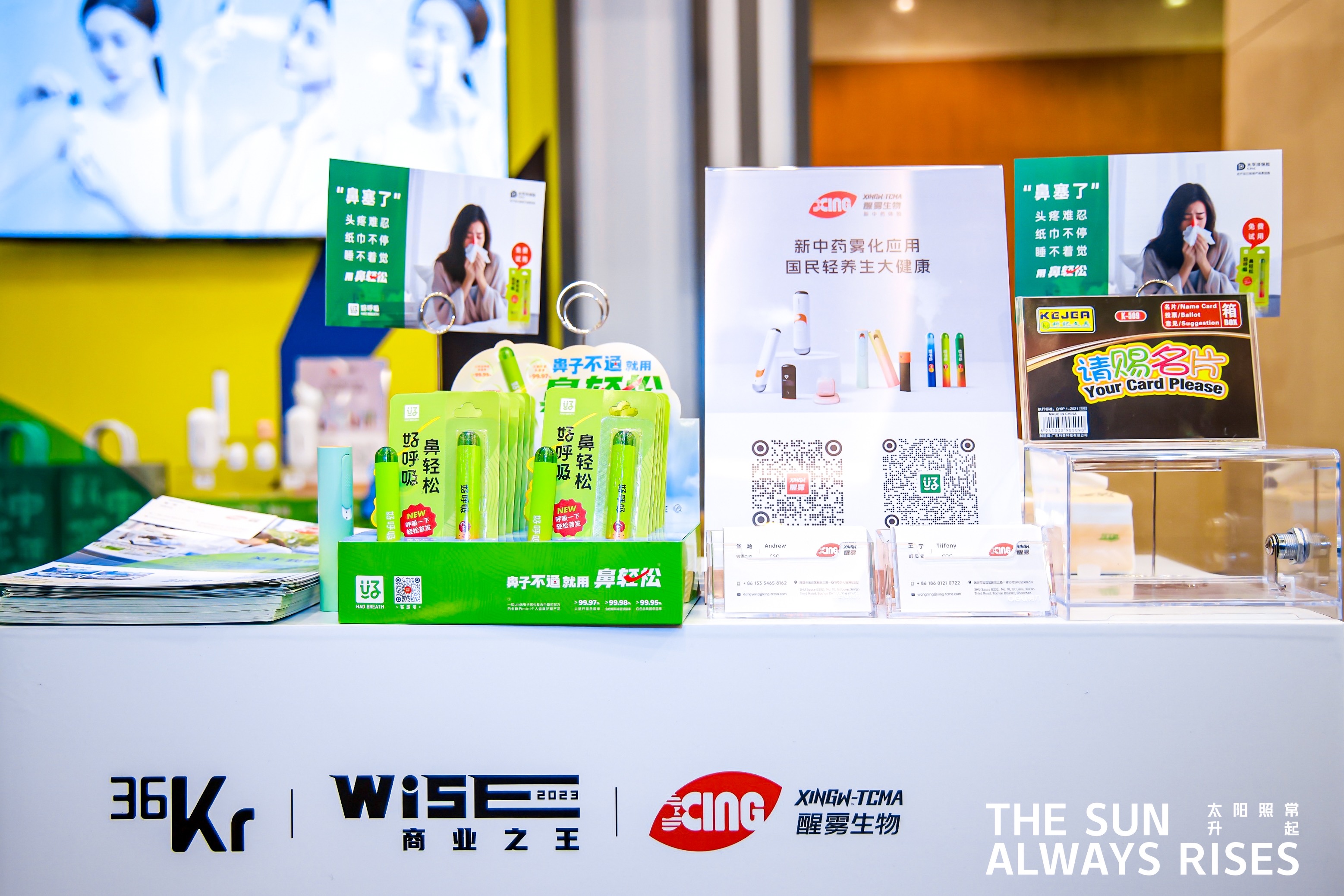 其中,醒雾(深圳)生物作为参展企业之一亮相WISE新商业之王大会线下展区,携手旗下“好呼吸鼻轻松抑菌液”、“雾化润眼仪”、“四合一雾化器”等眼鼻口中药雾化产品矩阵,与大会嘉宾及观众探索雾化+中药、传统中药新体验发展及新中药新运用,引领用户体验口袋级健康解决方案。
