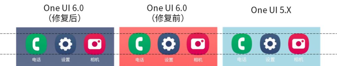 更新完的第一时间,我还以为自己的系统也难逃「中年发福」魔咒,因为整个 UI 界面看起来都「肥硕」了不少,尤其是相比升级前全新的 XXL 号应用图标,说是 One UI 6.0 开机默认「关怀模式」应该都有人信。三星在系统更新推送几天后很快意识到了这个问题,并通过新版主屏幕 App 进行了修复。
