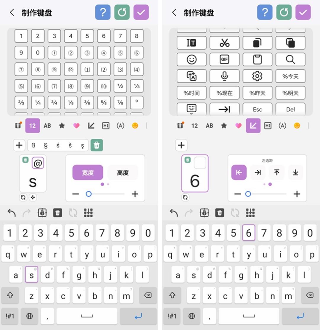 第一个功能是自定义键盘。在这里你能调整每一个按键的位置、尺寸、符号、表情,甚至还能添加额外的配列和功能操作,几乎任何你能想到的自定义选项,使用这个功能都能实现。