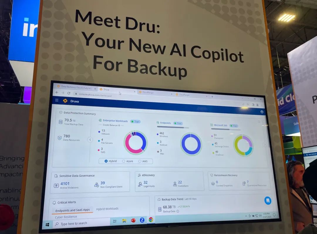 “Your New AI Copilot for Backup(数据备份的AI助手)。”在展会上,Druva一组标语,宣告自己发布了新的AI助手Dru,并可为客户提供定制化服务。