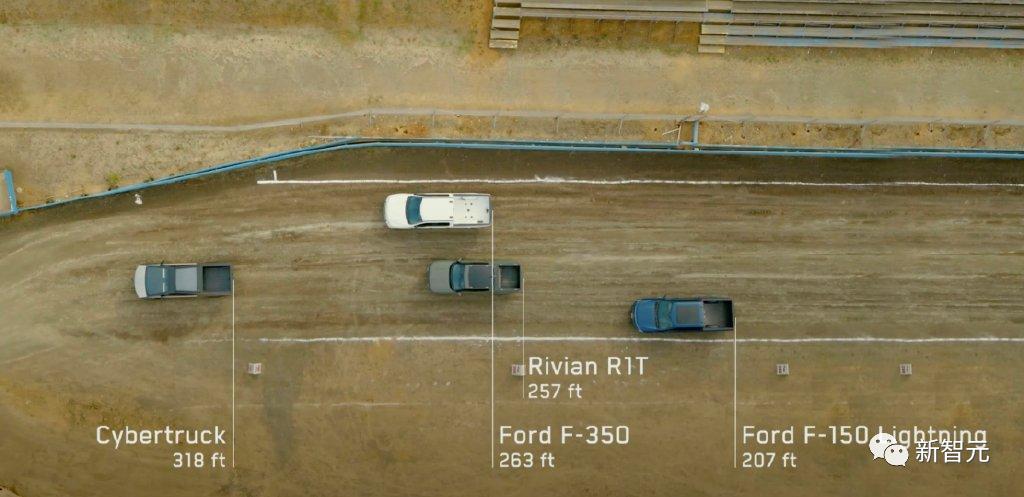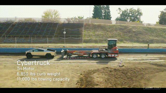 在力量挑战中,Cybertruck在拉着超过十吨的物体时,轻松胜过柴油动力的Ford F350、F150 Ligntning纯电还有Rivian R1T。