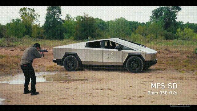 Cybertruck防弹设计,更是绝无仅有。全身采用防弹不锈钢材质,就连Tommy Gun、MP5和9mm手枪都没法击穿。