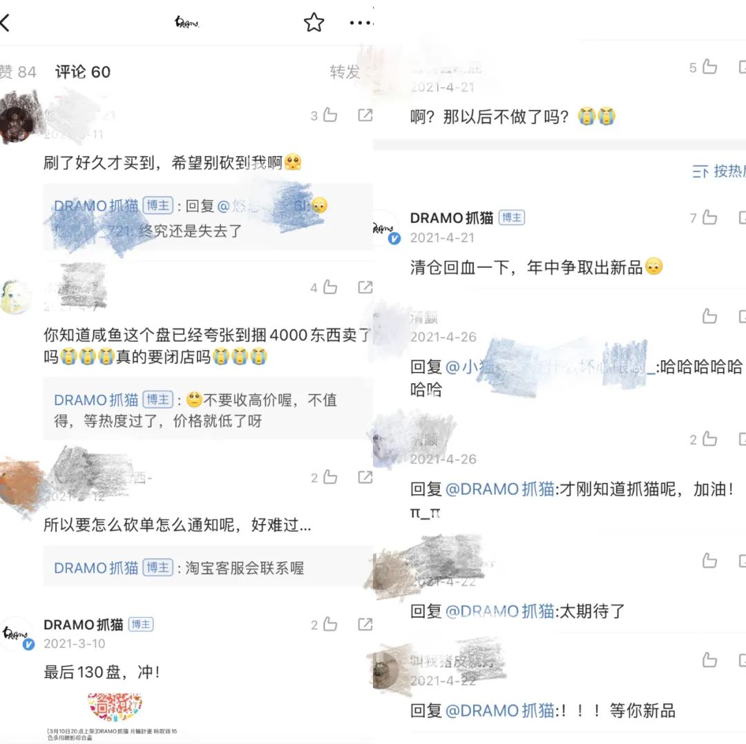 这当中最典型的要数DRAMO抓猫。据了解,DRAMO抓猫成立于2017年4月,品牌Slogan为“源自野生,饱有天真”,曾推出口红、眼影、指甲油等产品。2020年末,DRAMO抓猫店铺发布了即将闭店的信息,消息一出即引发不少博主和网友关注,不少消费者也选择购买产品表达对品牌的支持。2021年3月5日,DRAMO抓猫微信公众号还曾发布文章《对不起,我们发货太慢了!》,其中提到“在2021年4月25日,我们将会整理库存开展一次清仓闭店活动”。
