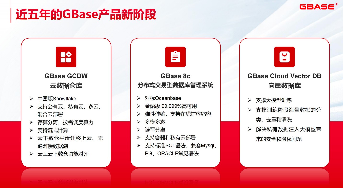 接下来,围绕新的云化、大模型等技术趋势,南大通用推出了三款新品作为关键产品发力:
