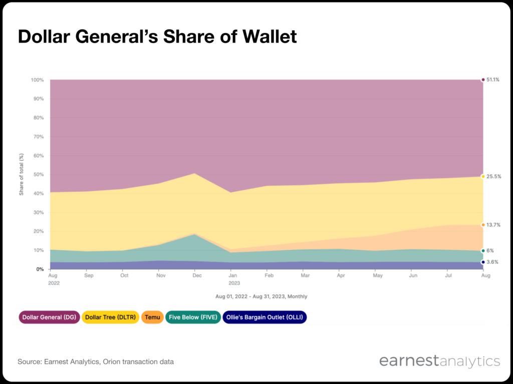 根据美国earnest信用卡数据,Dollar General和Dollar Tree的消费者越来越多地从Temu购买商品,后者在折扣商品的市场份额,从一年前的0%扩大至今年9月份的14%,与之相对,前两家连锁商家的份额均出现了不同幅度的萎缩。