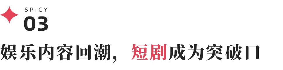 另一方面,消费疲软期,互联网广告瞄准了最具增长势能的叙事营销,加快了娱乐化内容的回潮。其中,爆发增长的短剧是大厂广告最值得一提的突破点。