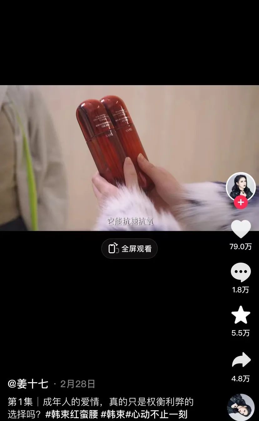 今年上半年,韩束冠名的三部短剧在抖音累计播放量超30亿,成功助力旗下单品——红蛮腰系列护肤产品的爆发,该产品全渠道销量超150万套。快手财报数据同样佐证了短剧营销能力的升级,2023年第三季度,星芒计划短剧招商收入环比提升超10倍。