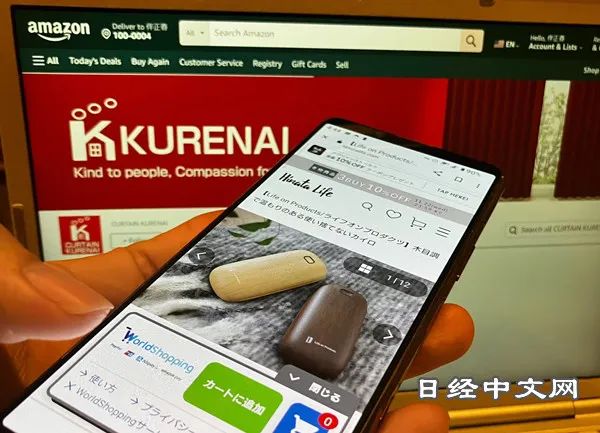 在自家电商网站上已开始跨境交易的日本“Hinata Life”(前面)和进入美国亚马逊的日本CURTAIN KURENAI