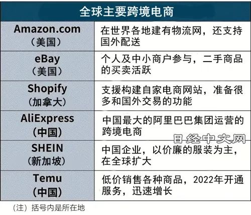 在跨境电商市场上表现突出的是中国平台的举动。总部位于新加坡的中国电商平台SHEIN主要经营服装,Temu主要经营广泛的日用品。凭借将在中国制造的自家低价商品销往国外的业务,迅速提高了存在感。Temu开通服务是在2022年9月,从业务开始仅1年时间就进入了包括日本在内的几十个国家,实现了迅速增长。