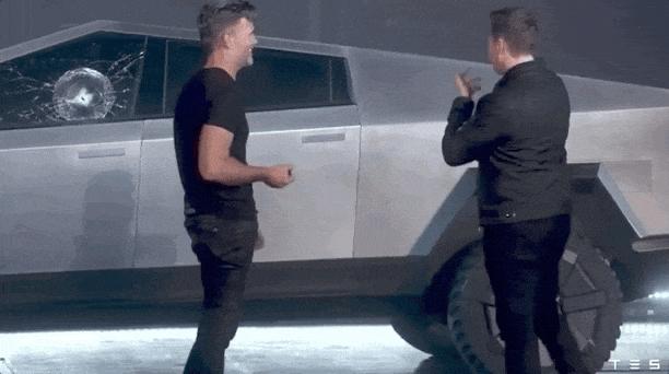 在当年的发布会上,众目睽睽之下赛博皮卡的车窗玻璃没能扛过铁球测试,马斯克最终尴尬地站在碎玻璃前开完了整场发布会。