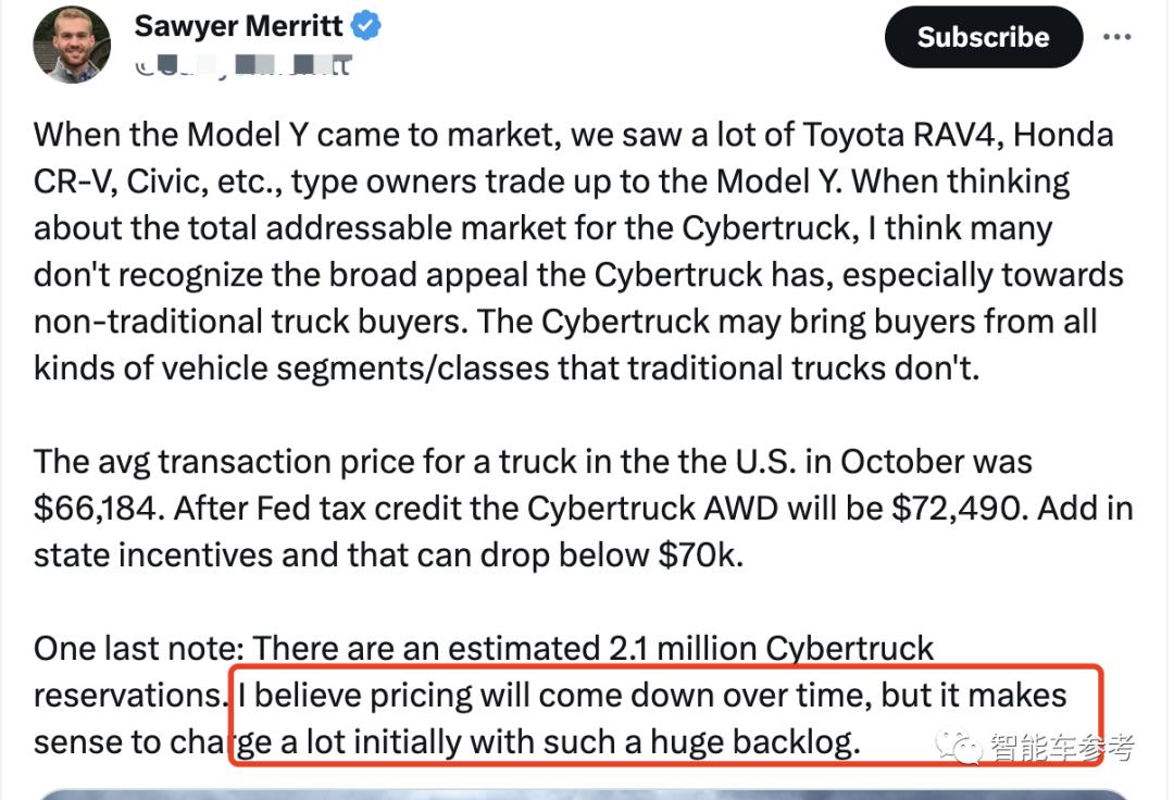有大V发表了相同看法,称后期应该会降价,不过这波涨价也挺合理,毕竟车还没上就积压着200万订单。