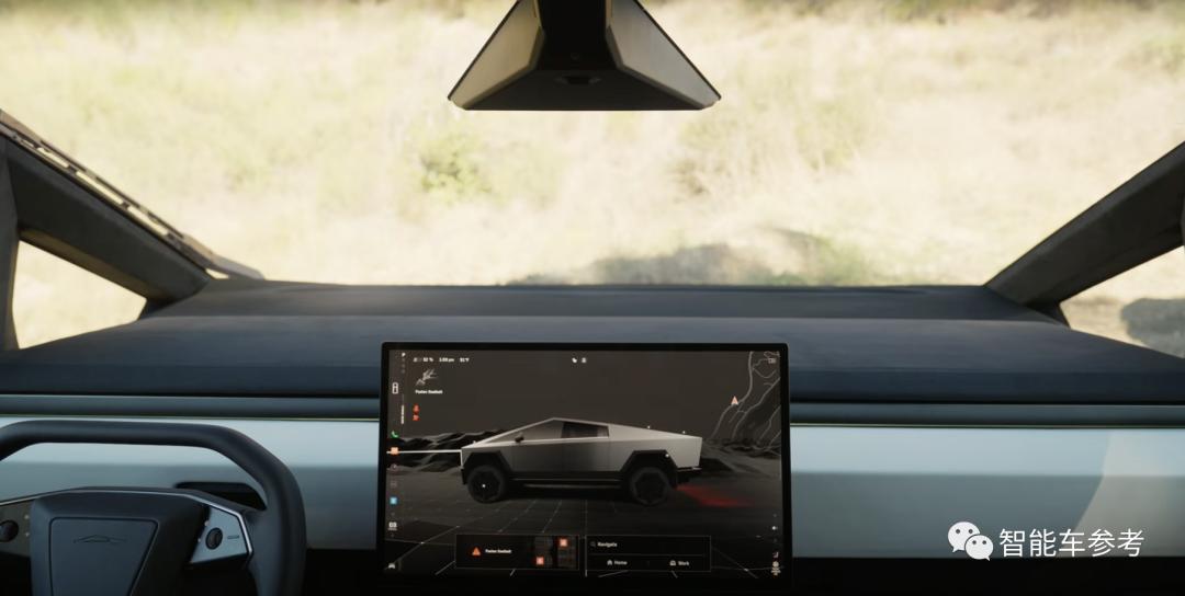 以上就是赛博皮卡的静态体验,在了解实际驾驶体验前,要说明一点,这辆车同样砍掉了传统内后视镜,原来的位置以一颗摄像头替代,而不是一块流媒体后视镜。