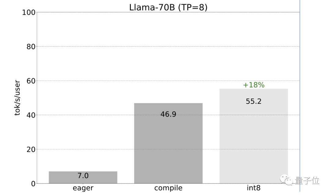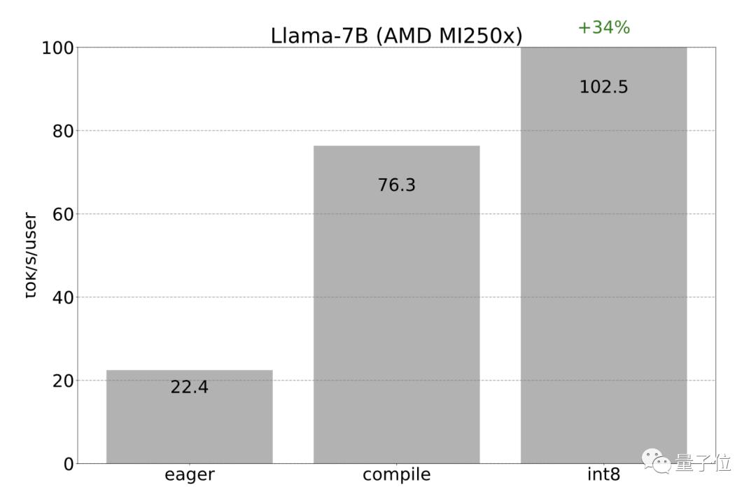 开发团队观察到int8量化的加速从22 tok/s达到102 tok/s: