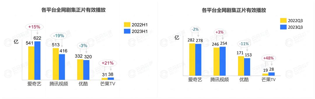 2023上半年,芒果交出了有效播放量38亿,同比增长21%的亮眼成绩,Q3有效播放量更达到了48%的增长,是四大平台中同比增长率最高的一个。