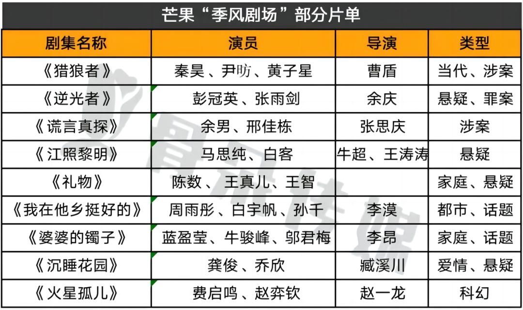 想要趁着这阵东风扶摇直上的芒果,在11月秋季招商会上,一口气发布了2024年“驷马难追”超80部待播片单,8部季风、15部网剧、24部网剧项目,足见野心。