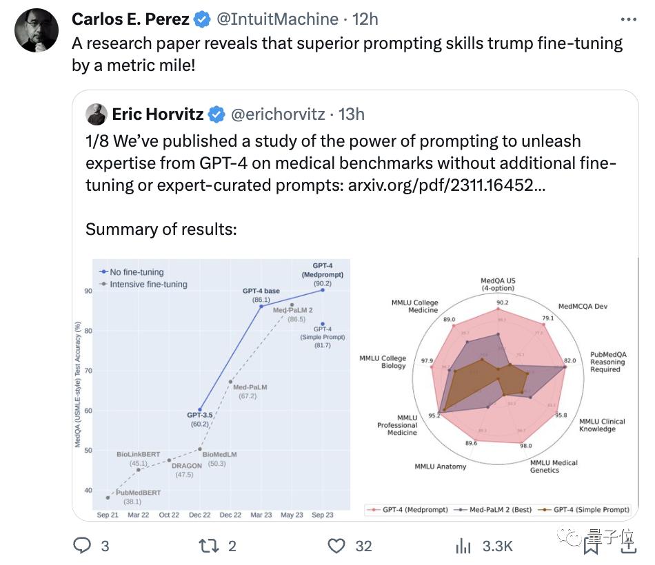 Carlos E. Perez直呼“出色的提示策略可以甩微调一大截”: