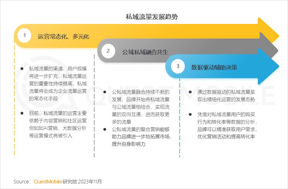 4、私域流量未来将会常态化、多元化运营,强化与公域流量融合共生,在数据驱动下进行精细化运营