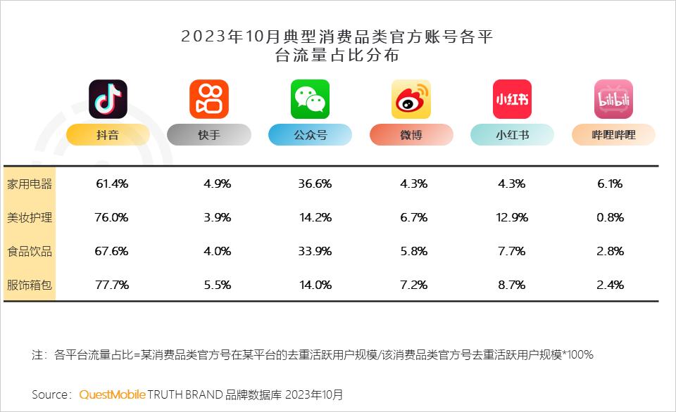 1、抖音成为典型消费品类官方账号流量的重要来源