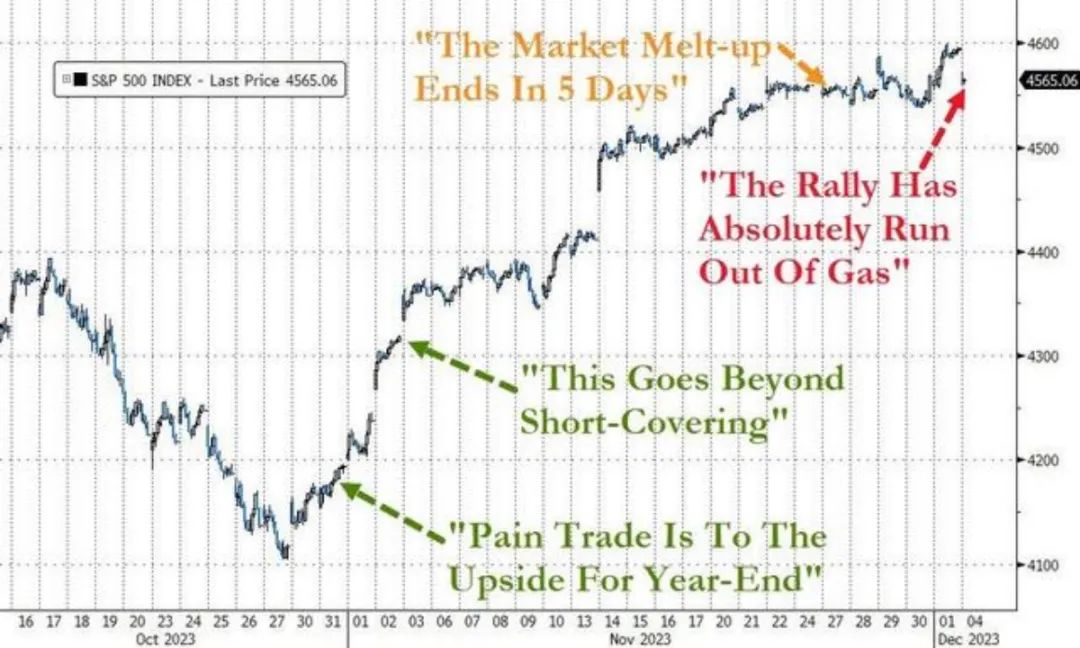 他建议考虑在第一季度对标普在4600点附近的投资组合进行对冲,并指出下周可能会面临潜在的波动因素,包括12日的CPI数据、13日的美联储货币证策会议,以及规模宏大的1月期权到期。Rubner认为,目前市场普遍持看涨观点,与10月底的市况形成鲜明对比。
