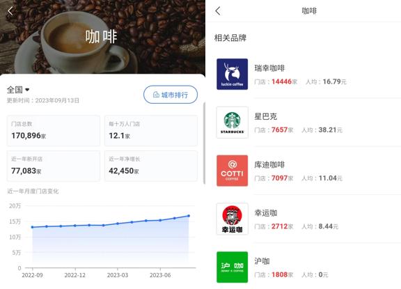 品类红利在近两年的咖啡赛道上也表现明显。窄门餐眼数据显示,咖啡是近一年内为数不多的呈现门店正增长的餐饮品类之一,但不得不提的是,当下882个品牌,17万+门店的规模,也让咖啡品类的红利期转瞬即逝。