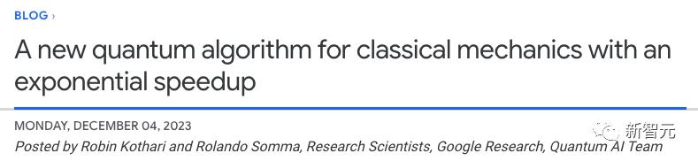 研究博客:https://blog.research.google/2023/12/a-new-quantum-algorithm-for-classical.html#:~:text=In%20%E2%80%9CExponential%20quantum%20speedup%20in,reasoning%20purely%20about%20classical%20systems.