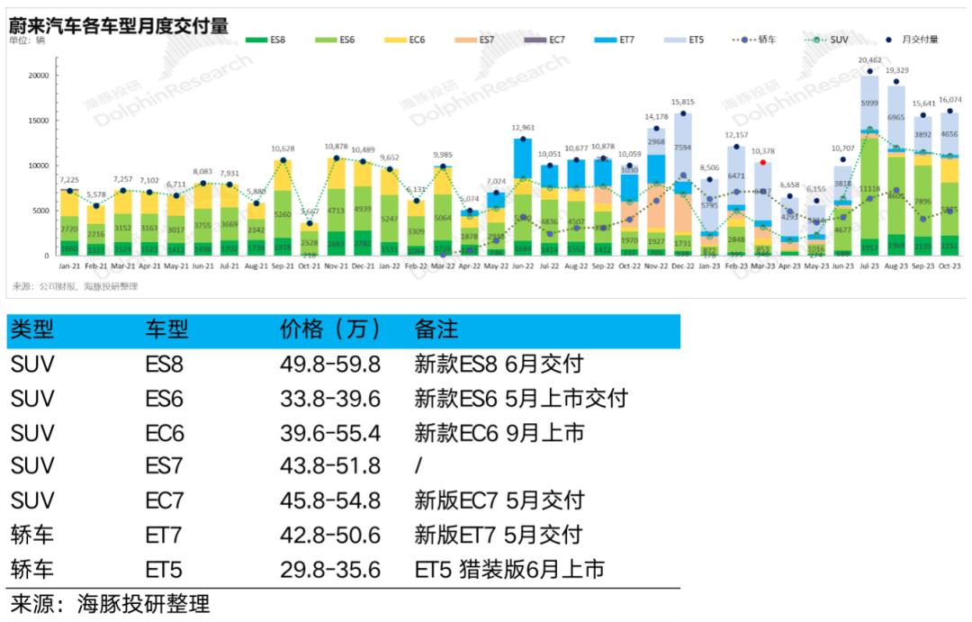 而本季度的单车价格上行主要由于销售结构中单价相对ET5更高的ES6(起售价33.8万)占比从上季度25%提升到三季度50%,带来了单车均价提升到31.4万。