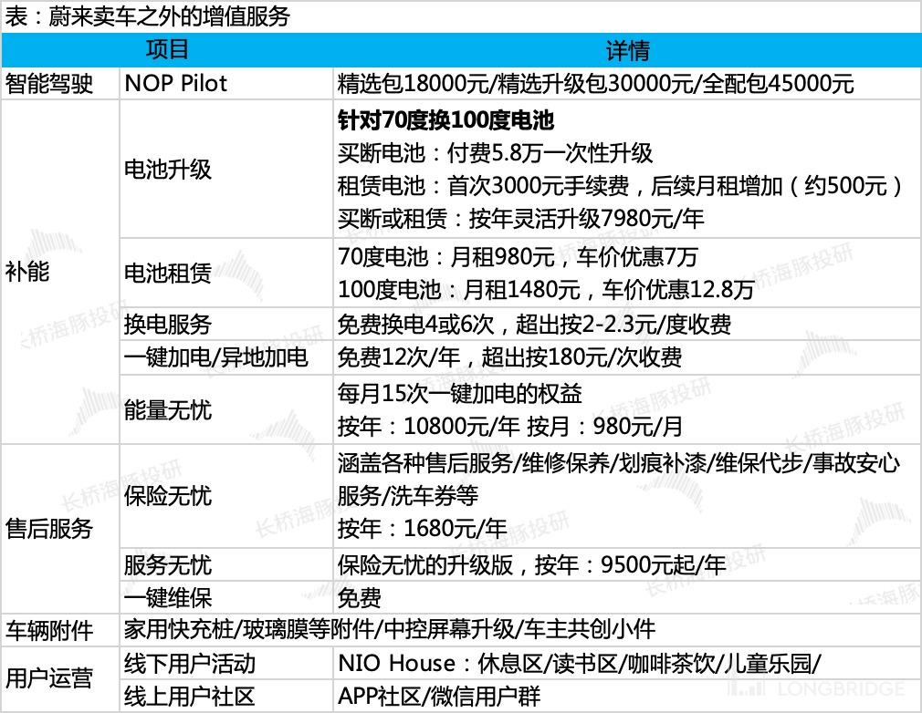蔚来虽然搞了很多新型的服务,换电、电池升级、服务包等等,但蔚来其他收入的核心来源其实还是传统卖车时候连带的配件收入、保险、延保等。