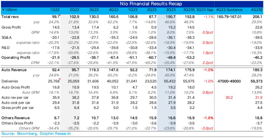 蔚来三季度整体收入190.7亿,同比上升了46.6%, 汽车业务收入和其他收入基本都在预期之内。