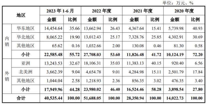 公司主营业务收入分地区的构成情况,图片来源:招股书