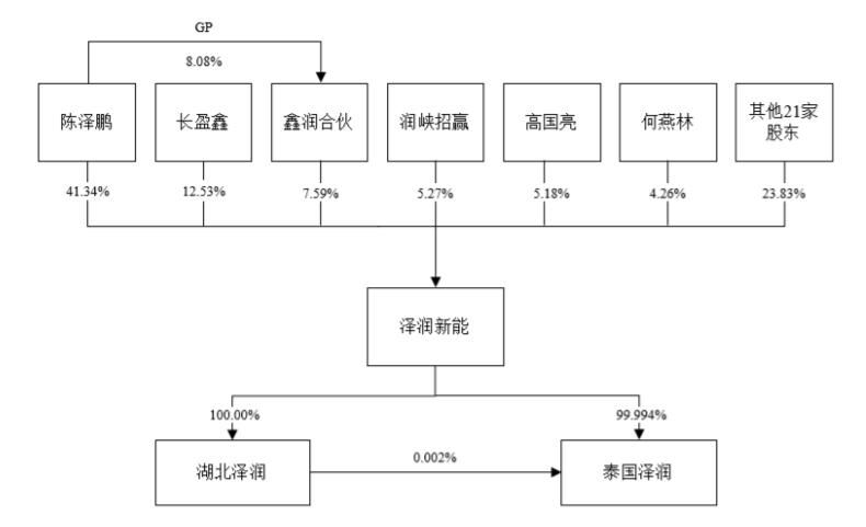 泽润新能专注于新能源电气连接、保护和智能化技术领域。招股书显示,本次发行前,陈泽鹏直接持有公司41.3354%的股份,通过担任鑫润合伙执行事务合伙人控制公司7.5915%的表决权,合计控制公司48.9269%的表决权。