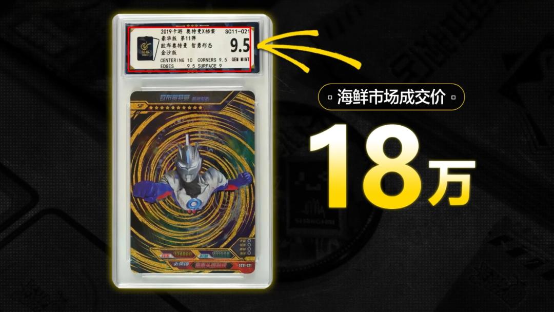 二级市场上真正的王者是那些已经绝版的限定卡片,比如欧布奥特曼智勇形态这张卡,就在二手平台上拍出了18万的天价。