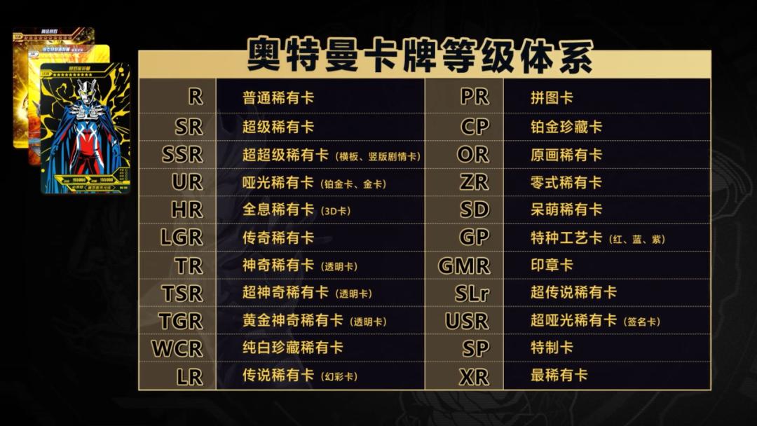 首先,奥特曼卡有一个非常庞杂的等级体系,前后推出过总计三十多种等级的卡牌,一个奥特曼往往会以不同的姿态出现在不同的卡组里。