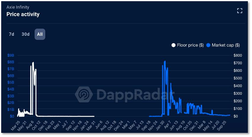 Axie NFT的地板价与市值不复往日